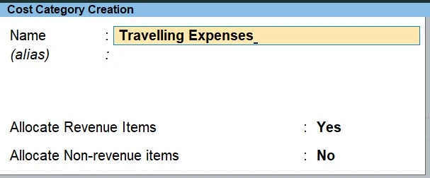 A cost category acts as a parent group for cost centers. You can create multiple categories and, within each, define different cost centers.
